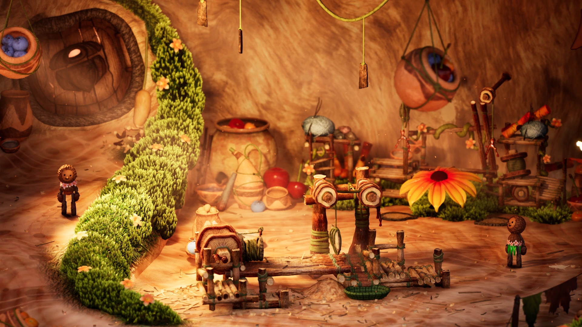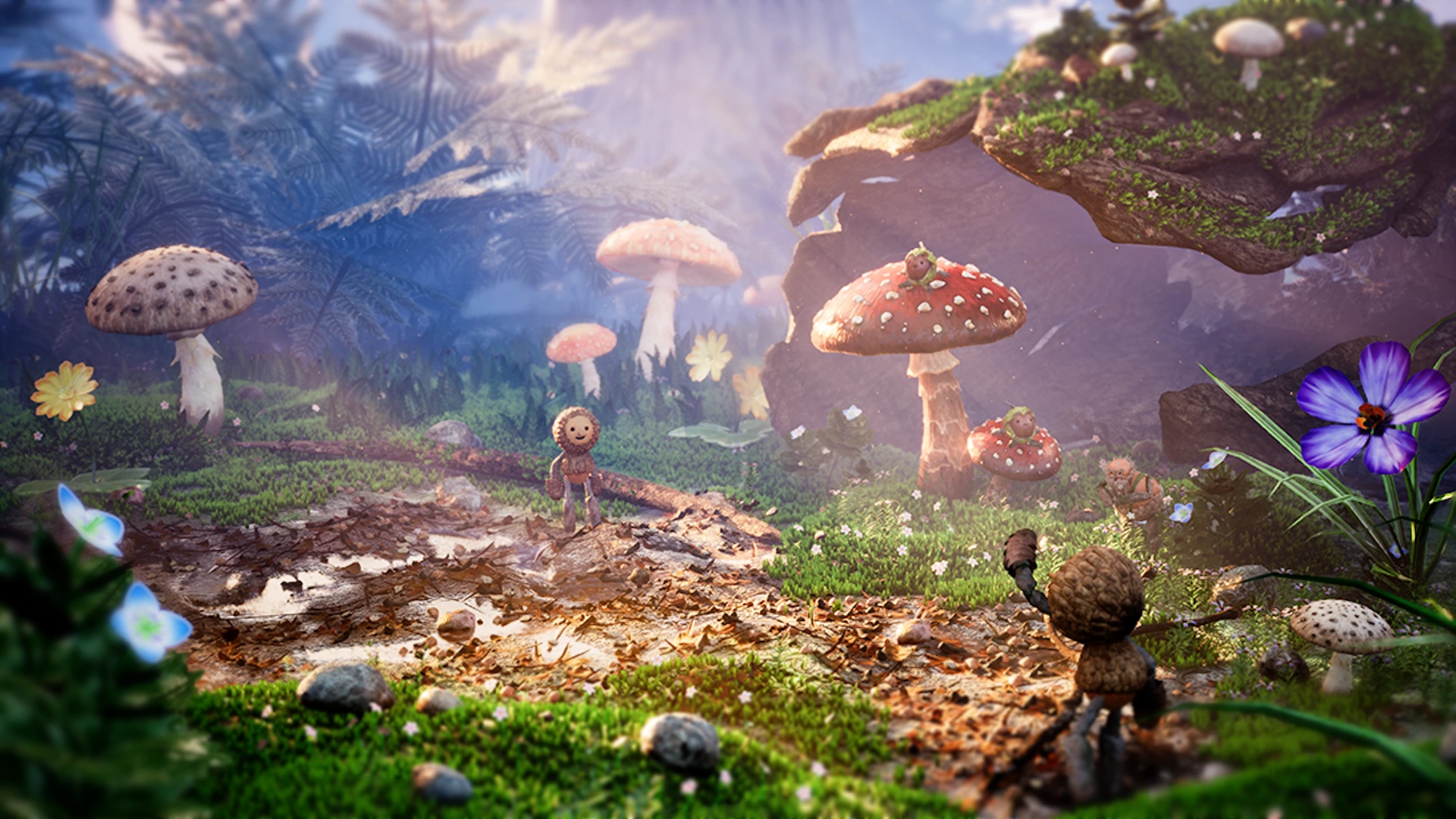 Oakfolks (development codename: "Becorn") is a cooperative game where the objective is to create constructions for the Oakfolks community using machines and tools that must be operated by two players working together. Set in a miniature forest world inspired by photographer David M. Bird's "Becorn" creatures, players take control of small plant-based beings living in harmony with nature.